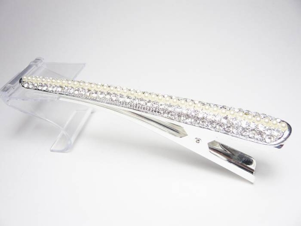 パール ラインストーン クチバシクリップ 12cm ロジューム