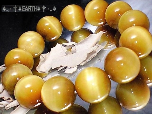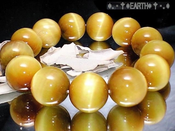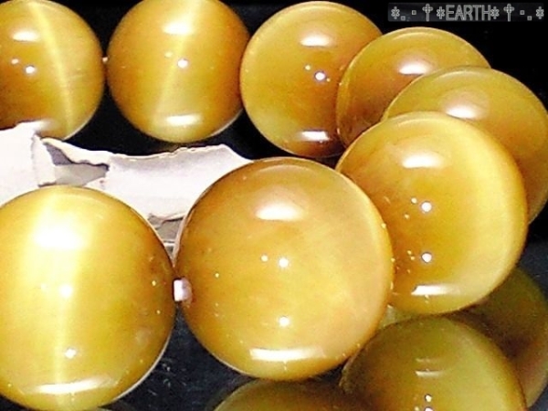極上天然石★14ミリゴールデンタイガーアイ金色虎目石 数珠 | |