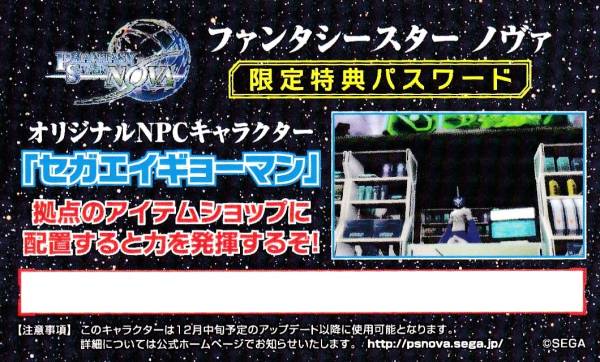 ファンタシースター ノヴァ 特典パスワード セガエイギョーマン