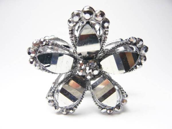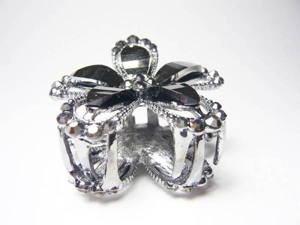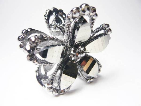 スワロフスキー フラワー ヘアクリップ ガンメタリック