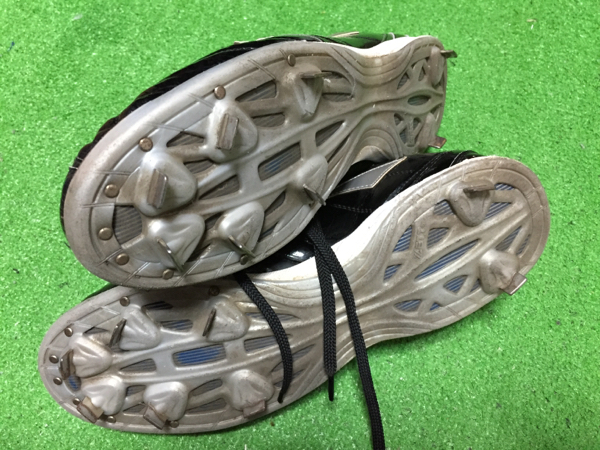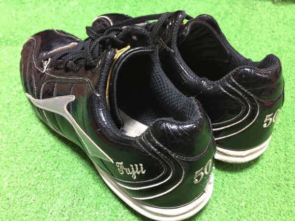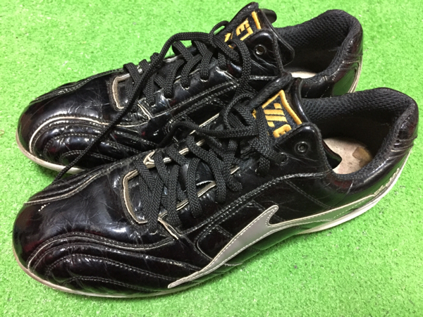阪神の藤井彰人捕手が’14シーズンに実使用したスパイクです。サイズ明記はありませんが、約27センチです。
