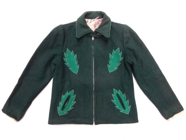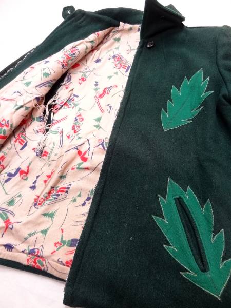 ビンテージ 希少 40S ウィンター スポーツ スキー ウール ショート ジャケット 緑 グリーン 総柄 プリント ライナー ライニング レア 珍