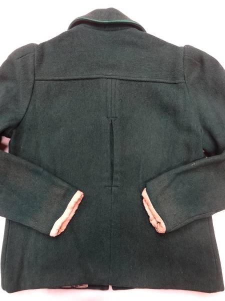 コンディション:全体に細かい擦れやほつれなどあります。背中にピンホールが6か所,左肩に8ミリの破れ,両袖のライニングが伸びた為か表地のウールより少し長くなっています。ライニングの右脇下から裾にかけて30センチくらい裂けた箇所と首左側に5センチくらいの破れがあります。年代と用途を考慮したらどれも致し方ないと思えるもので、着用に支障があるような致命的なダメージはありません。ライニングの破れは直そうと思えば直せる程度です
