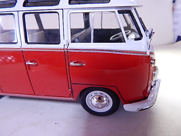 マイクロバスのキットになります。箱なし。ボディーはクレオスのホワイトとレッド使用。内装は適当に調合したグレーで筆塗です。屋根の帆の部分はガルグレーの筆塗です。当時のキットを途中まで作り今まで放棄していました。そのためデカールがかなり固まってきてしまい右ドア部残念ながら失敗し剥げました。あとから筆で書きました。(3枚目写真)材料費値上がりと失敗しましたが手間がかなりかかってしまった為、安価にはしません。その他の説明は必ず自己紹介欄をご覧ください。H27.8月完成。