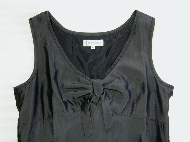 ■リボン付き/切り替えノースリーブワンピース 開閉チャック