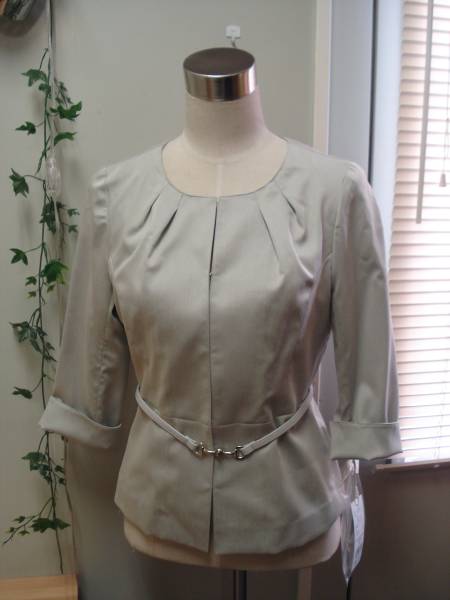新品タグ付◆Mayleaf◆薄手ナローベルト付ジャケット グレー11号