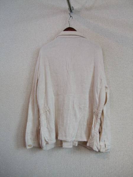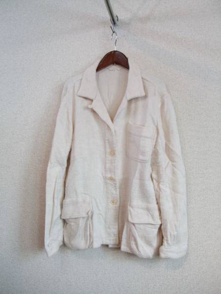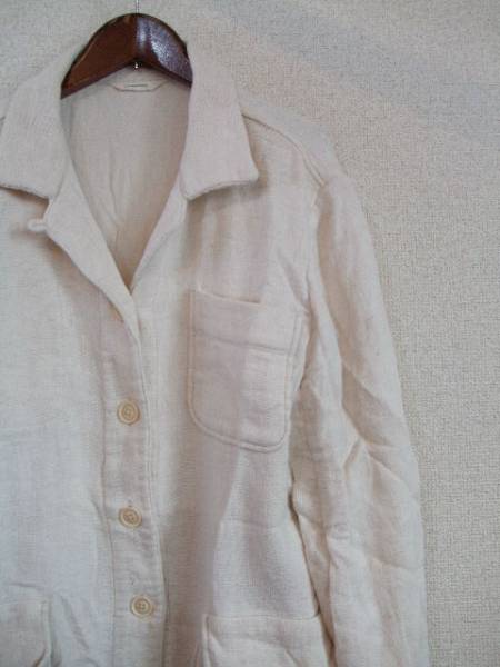 | 商品紹介 | カジュアルな素材感のジャケットです。 ゆったりした形でナチュラル系の羽織にピッタリです。 色はクリームがかった白ですが、麻の茶色い繊維が混ざっています。 《素材》 表地:綿75% 麻25% 別布:綿50% 麻50% |