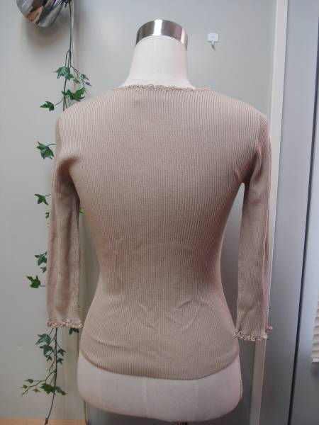 落ち着いたお色みに、キラッと光る編みレースがアクセントとなっております(*^_^*)
