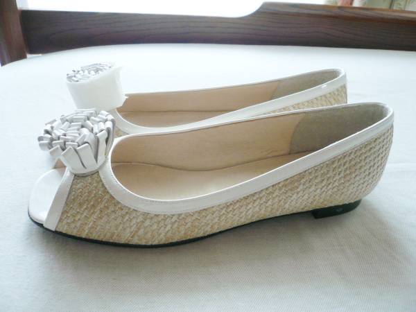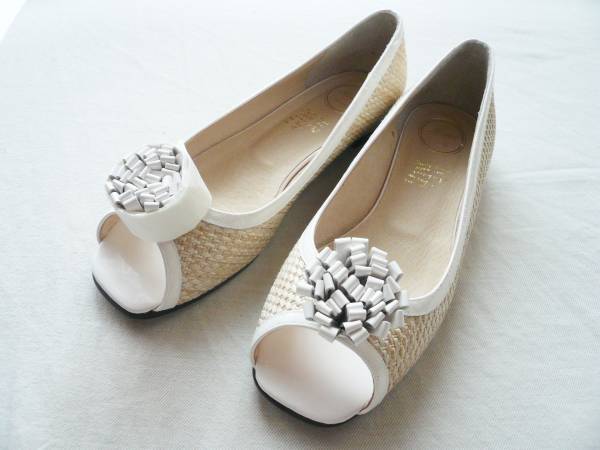 サリースコットで購入したオープントゥーのパンプスです。白い部分はエナメルレザーです。サイズ表記は35(22.5cm相当)ヒール1cmです。甲の部分にお花のような飾りがついています(写真撮影の為に片方はお花が開いています)専用の箱付き、¥30,450、日本製です。未使用です。普段、パンプスは22.5cm、スニーカーは23.0cmを履いています。甲高・幅広です。状態は極力チェックし、できるだけ表記しておりますが、自宅で保管していたので見落とす可能性があります。過度に状態を気にされる方は入札をご遠慮下さい。新規の方、過去に落札者都合によりキャンセル経験が多数ある方は削除させていただく事があります。どちらも入札をご希望される際は事前に質問欄からご連絡いただけると助かります。落札後のトラブルを防ぐためにも商品の状態について気になる点があればお気軽に、時間に余裕を持ってお尋ね下さい。(日中はパソコンチェックができないので終了当日・間際のご質問には回答が間に合わない場合があります)☆ここから先は必ずご了承ください→発送は自宅での計測が難しいのでクロネコ宅急便着払いとさせていただきます。メール便、レターパック、ゆうパック、ゆうちょ振込は受け付けておりません。落札されてからのご相談もご遠慮願います。こちらの不注意のみ返品を承りますが、その際の送料・入金の際の手数料は落札者さまでご負担願います。以上事細かに書いてしまいましたが、他にも出品しているのでどうぞご覧ください☆