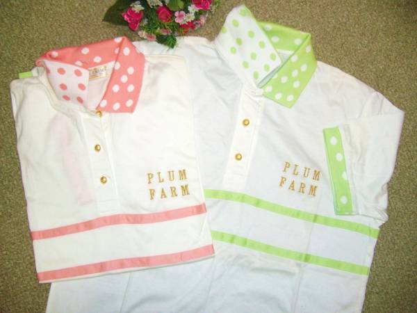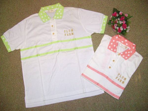 新品★金刺繍&金ボタンお上品 水玉 薄手半袖ポロシャツ2枚