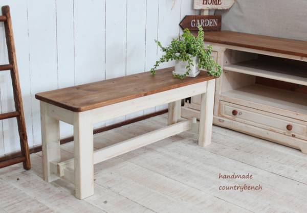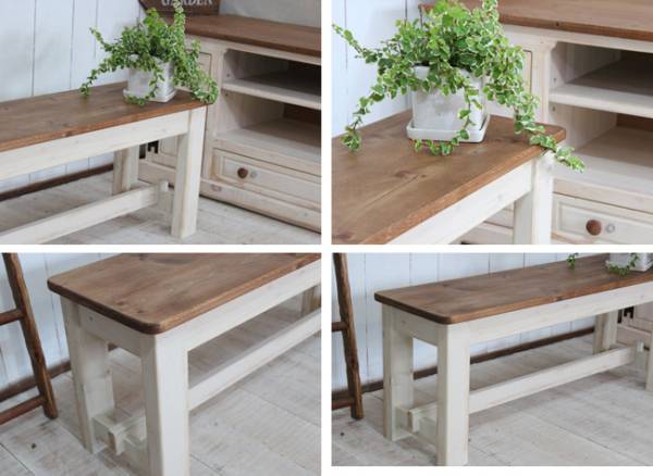 ♪アンティークホワイト風 シャビーなカントリーベンチ♪カントリー家具