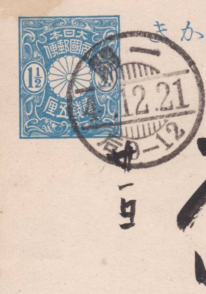 t1876★櫛型印/一関4.12.21/后9-12/分銅葉書