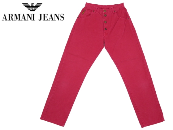 J-2388★美品★AJ アルマーニ★超激レア貴重 90s イタリア製ヴィンテージ パッションピンク カラーパンツ テーパードスリム ジーンズ W30