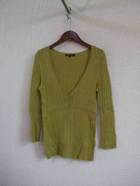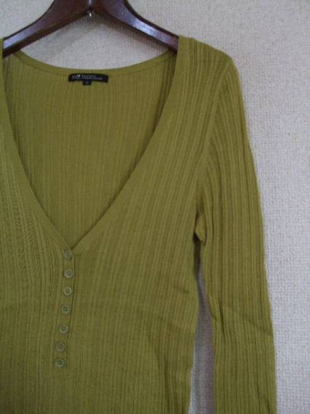 | 商品紹介 | 深いVネックの長袖コットンニットです。 本体は太さの違うリブ素材です。 色は表現が難しいのですが、少し黄緑っぽいカーキです。 《素材》 綿100% |