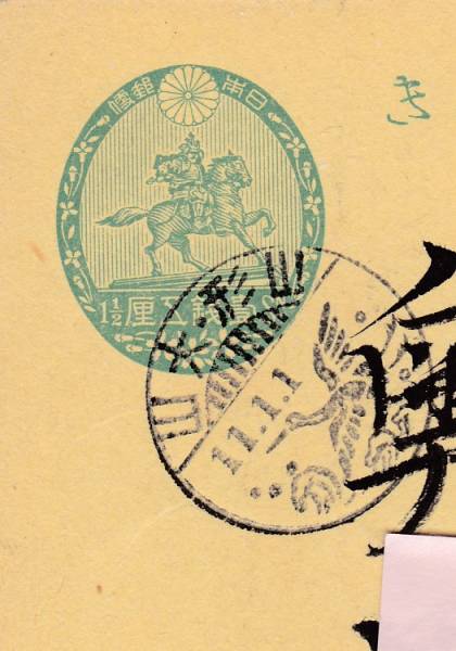 t2047筍絵入年賀櫛型印/山形・大山/楠公葉書