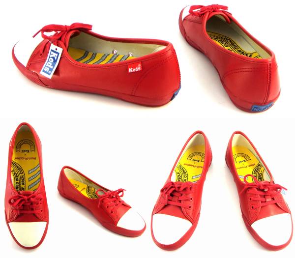ハッシュパピー&Kedsコラボ展示品本革スニーカー23赤T1454