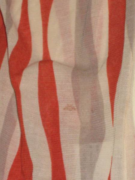 色目は赤、グレー、ベージュの三色が変形したストライプ柄になってます。