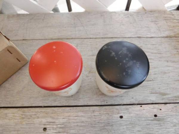 | コメント | 【素材】 陶器 【大きさ】 H 8.5cm 【商品】 古いサトちゃん?のような絵の付いた湯のみ茶碗 2個セットです。 未使用のようです。 製薬会社の名前等は入っていません。 【状態】 未使用のようですが 蓋は劣化で白っぽく シミのような感じになっています。 他とくに目立ったダメージはありませんが 長く 置かれていたものなので 傷や汚れ、くすみなど あると思います。 時間が経過した物なので ご理解の上 ご入札下さい。 |
