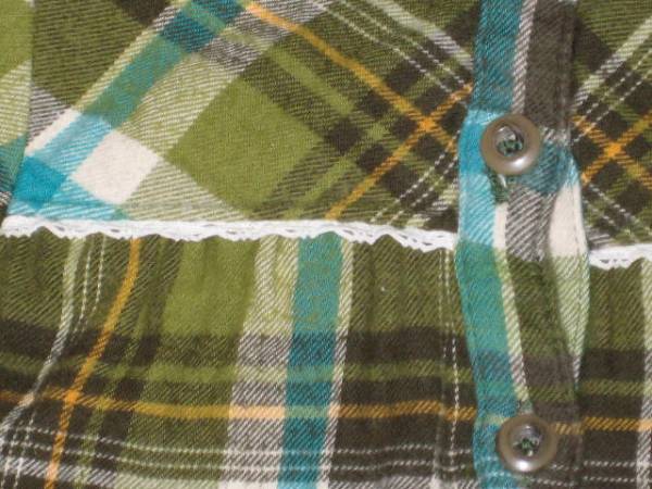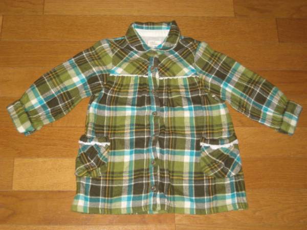 BEBE★可愛い緑系チェック柄丸襟シャツワンピース♪90cm