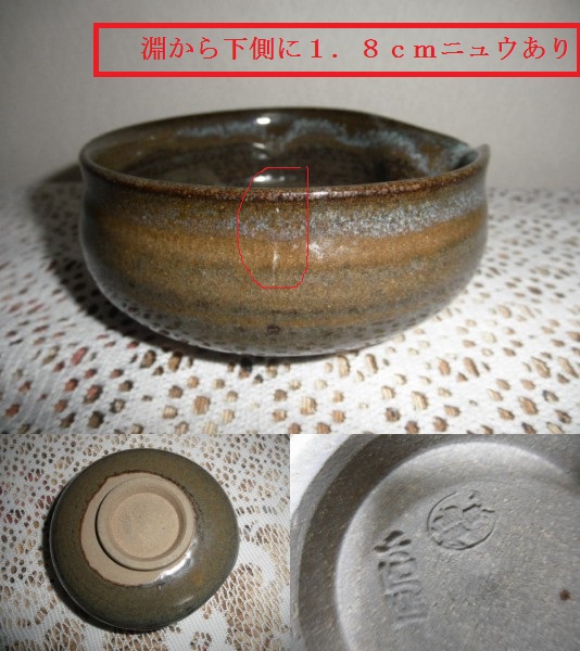 | 高取系の小石原焼の片口です。 とても釉薬の味わい深い片口です。 画像表示のように淵から下側に1.8mmのニュウがございます。ご理解ください 花器としてもお使いになれますよ。 小石原 鶴見の銘がございます。 サイズ 上径12.2cm×11.2cm 箱なし お願い事項 ※細かい点を気になさるお方もしくは新品をお求めのお方は、ご入札をお控えください。 ご理解納得されてのご入札をお願いいたします。 ♪お客様のPC環境で、実物の商品の色と多少の誤差が生じる場合がございます。それらの点を十分ご理解いただいた上でご入札頂きますようお願い申し上げます。 ♪お客様の思い描くイメージが違うと言った返品はご勘弁ください。 ♪システム手数料・消費税、梱包代金等、一切頂戴致しておりませんので、ご安心して御落札下さい。 ♪発送は基本的に、ゆうパックでの発送になります。 ♪補償はございませんが、お安い配送をご希望のお方は、定形外円可です。 ♪発送が郵便の場合は、土曜日曜祝日の発送が出来ませんのでご了承ください。 | |||