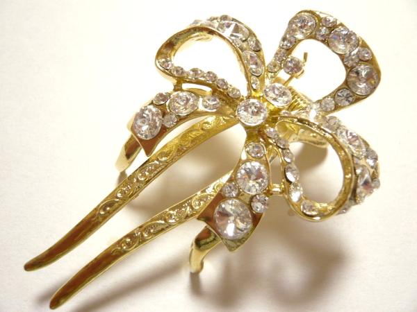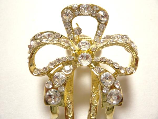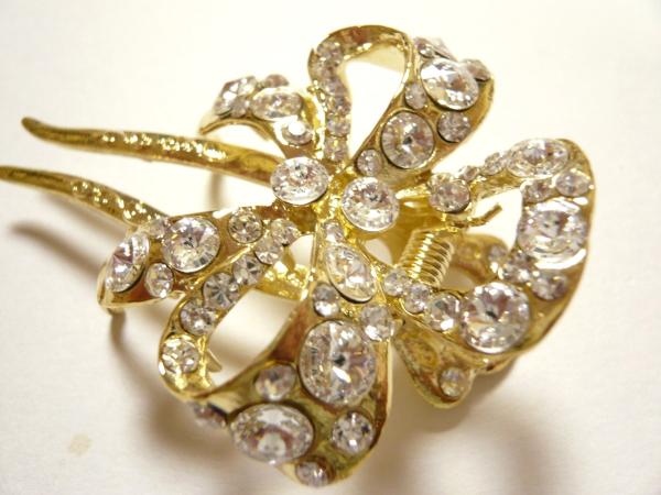 | 存在感たっぷりのラインストーンがモチーフ全体に散りばめられた豪華な、金属製のクチバシクリップです。 | ||