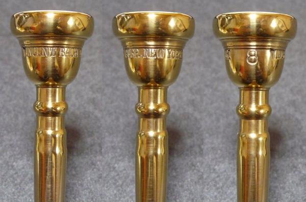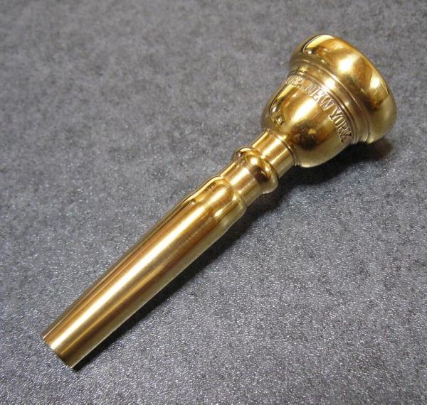 ニューヨークバック#8。ブロンクス初期の刻印です。ゴールドプレート99%大きな傷も無くとてもよいコンディションです。シャンクが細くフリューゲルくらいの太さです。昔の細シャンクの楽器にちょうどよいと思います。普通シャンクの楽器には合わないのでご注意を!よろしくお願いします。管理番号A37