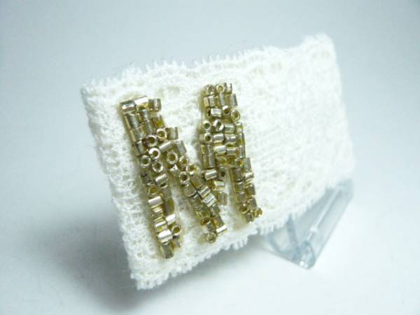 【HAND MADE】ビーズ イニシャル レース スリーピン M