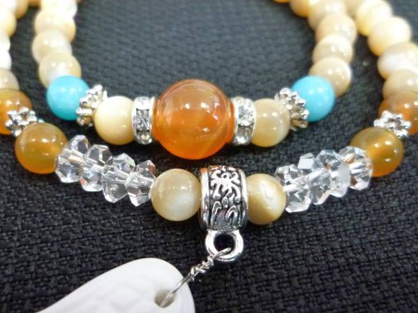 オレンジカルセドニー、マザーオブパール 2連 ブレスレット