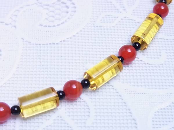 【数量限定販売になります】 琥珀、カーネリアン、ブラック・カルセドニーを組み合わせたネックレスです。 琥珀は、模造品や再生琥珀等の天然琥珀ではない琥珀が多く出回っていますが、鑑別機関の最高峰 「中央宝石研究所」 で鑑別をして、間違いない商品を供給してくれる、信用できるサプライヤーから仕入れをしています。 近年、産出量が激減し、値段が高騰しております。また産出国の輸出規制等によって、日本への輸入量も激減しています。 使用石 : 天然琥珀 天然カーネリアン(処理石) 天然ブラック・カルセドニー(処理石) 長さ : 約50cm 最大幅 : 約6.5mm 留め金 : 引き輪式 地金 : シルバー925 メッキ : ロジウム・コーティング 重量 : 約14g 参考小売価格 : 15000円 天然琥珀特有のグリッターと呼ばれるクラックやインクルージョンが少ないタイプの琥珀です。 【備考】 誠に勝手ながら、土、日曜日、祝日、長期休暇は、 発送業務をお休みさせていただいておりますので、ご了承下さい。 画像はサンプル画像ですが、サンプル画像と遜色のない商品をお送りします。 出来るだけ実物に近い画像を使っておりますが、実物と多少色が異なる場合がありますので、ご了承下さい。 環境に配慮して、必要以上の梱包をしておりませんのでご理解下さい。 基本的にはチャック袋等に商品を入れ、緩衝材で壊れないように保護してお送り致します。 プレゼント梱包はご対応しておりませんので、ご了承下さい。 スムーズなお取り引きを心掛けておりますが、仕事の都合上、ご返信、発送等に 多少お時間を頂く場合もあるかと思いますが、ご理解の程、よろしくお願いします。 ノークレーム、ノーリターンでお願い致します。 | |||