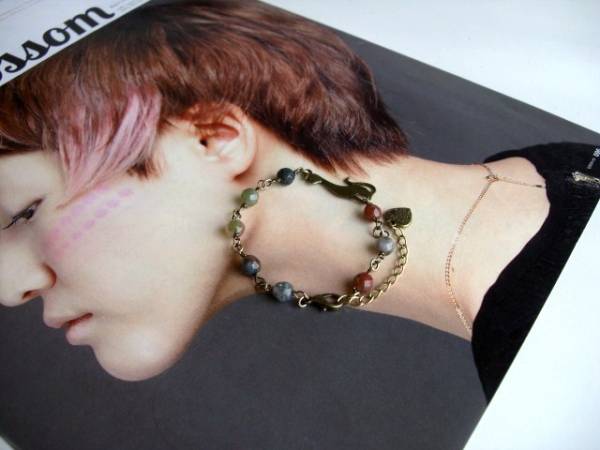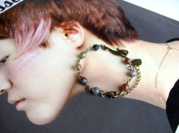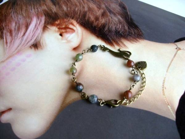 女の子の時間・・シリーズです♪小さな猫とクロスと・・シックなインディアンアゲートのブレスレットです♪落ち着いた色合いのインディアンアゲートに小さな 猫のチャームを合わせてノスタルジックな表情です♪♪インディアンアゲートは6ミリのランダムカットです♪猫さんは26×10ミリ位です ♪長さは16センチ+アジャスター6センチで最長22センチ位です♪お揃いのネックレスも出品しています♪シンプルで飽きのこないいつまでも着けられ るデザインを考えて作りました!ハンドメイドをご理解頂いてノークレーム、ノーリターンでお願いし ます