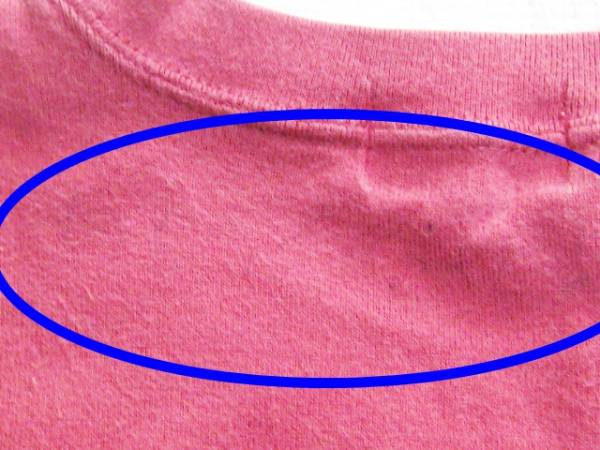 背中内側に大きく記名があり、背中の表側までペン跡がわかります。