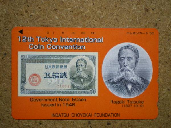 sihe・板垣退助 50銭札 紙幣 印刷朝陽会 テレカ