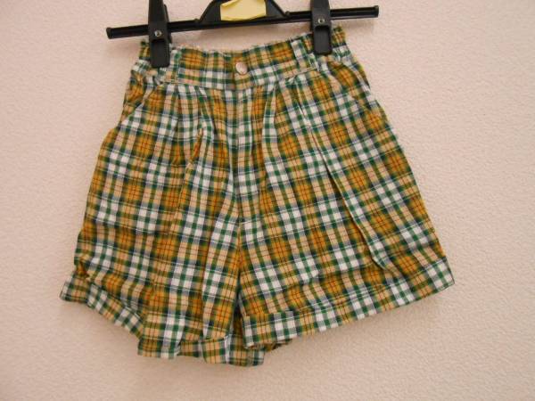 ●子供男の子用/半ズボン/チェック柄/黄色・緑色/120サイズ