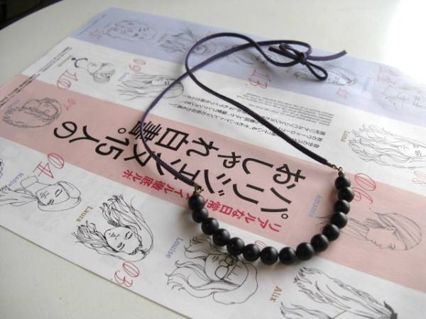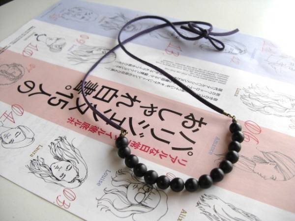 小粋にセレクト・・シリーズです♪ダルメシアンに恋して・・シックなマットオニキスのネックレスです♪丸玉のマットオニキスがキュートな表情です♪ダークパープルのスエード紐を合わせました♪お好きな長さで結んでいただけます♪又チェーンにも変更出来ます♪8ミリの丸玉のマットオニキスは長さ90センチ位で調節自由です♪お揃いのネックレスやリングやピアスも出品しています♪シンプルで飽きのこないいつまでも着けられるデザインを考えて作りました!ハンドメイドをご理解頂いてノークレーム、ノーリターンでお願いします