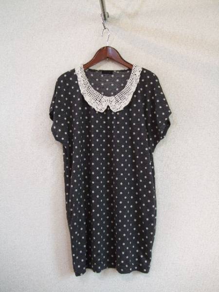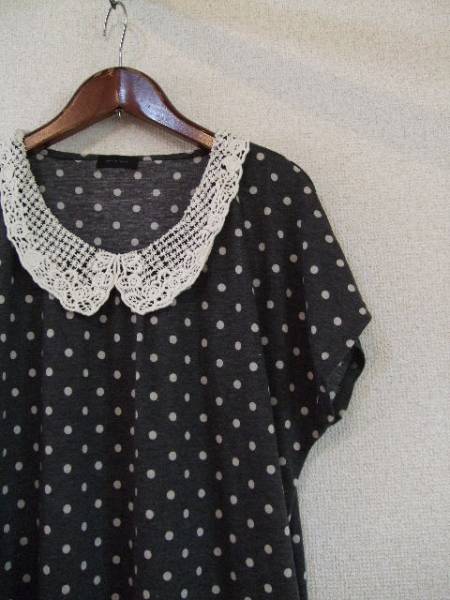 商品紹介 | グレーの地色に白のドット柄のチュニックです。 襟のレースがデザインのポイントになっていてかわいいです。 フレンチスリーブ位の袖丈で、身頃はコクーンシルエットになっていてオシャレです。 《素材》 本体:ポリエステル85% レーヨン15% レース:綿100% |