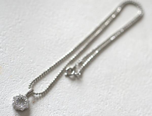 シルバー925製キラキラジルコニア付きトップのネックレス