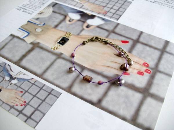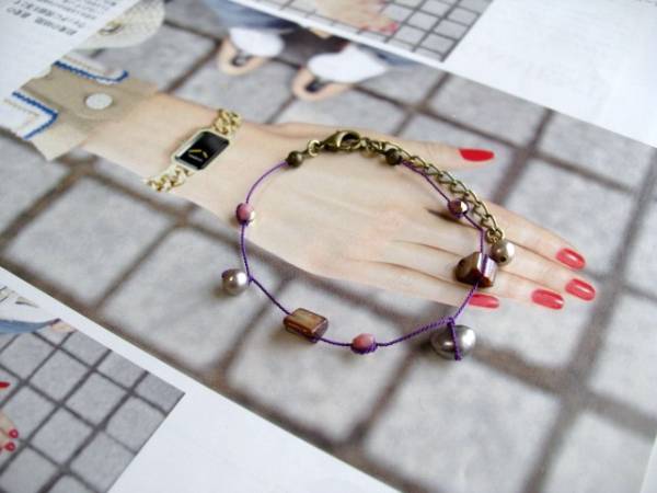 ニューヨーク・テイスト・・シリーズです♪春色スケッチ・・シックなダークパープルのシルクコードで淡水パールやチェコビーズを繋いだブレスレットです♪4ミリから8ミリ位までの淡水パールやシェルビーズやデザインチェコビーズを繋いで楽しい表情です♪長さは17センチ+アジャスター5センチで最長22センチ位です♪お揃いのネックレスも出品しています♪シンプルで長く着けていただけるデザインを考えて作りました♪♪ハンドメイドをご理解頂いてノークレーム、ノーリターンでお願いします。