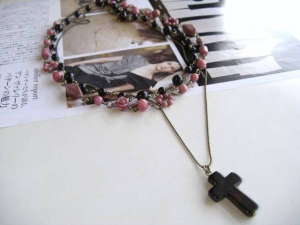 物語の始まり・・シリーズです♪イーニドの夢・・シックなオニキスとロードナイトのネックレス3本セットです♪漆黒のオニキスにダークピンクのロードナイトを合わせてロマンチックな表情です♪ロードナイトのネックレスは4ミリから17ミリ位までの丸玉や薔薇やSラインやナツメやドラムなどデザイン違いのロードナイトを集めました♪長さは全長73センチ位で調節自由です♪6ミリ、8ミリの丸玉のオニキスはシンプルに繋いで合わせやすいデザインです♪長さは全長83センチ位で調節自由です♪30×20ミリのオニキスのクロスには華奢なボールチェーンを合わせました♪長さは80センチ+アジャスター10センチで最長90センチ位です♪それぞれ単品やブレスレットも出品しています♪シンプルで長く着けていただけるデザインを考えて作りました♪♪ハンドメイドをご理解頂いてノークレーム、ノーリターンでお願いします。