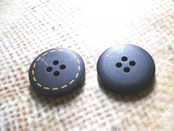 | ★商品説明★ | 本水牛ボタンにかわいいステッチのレーザー彫刻を施しました。 4穴のボタン 23mm3個 天然素材等に相性抜群の風合い。 またカバンのポイント等にも大活躍 水牛釦は、機械でつくらず、 水牛の角を1つ1つ輪切りにし、それを丸い形にくり抜き、手作業で、加工し型付けをし、バリなどをとり、ツヤ加工いたします。 既製品の服で「デザインも生地もよいけれど、ボタンが…。」 というものが多いので、一度付け変えてみては、いかがでしょうか? | ||
