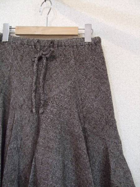 商品紹介 | 茶のツイード素材のスカートです。 腰周りはスッキリ、半分から下はフレアでふんわりした形です。 《素材》 表地:毛100% 裏地:ポリエステル100% |