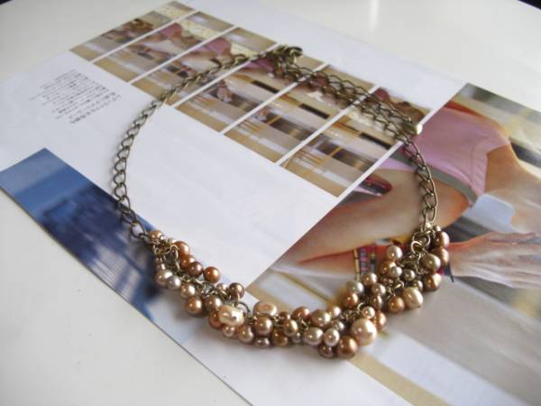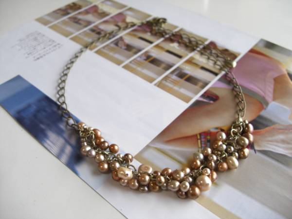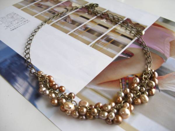 私的・クローゼット・・シリーズです♪メイクアップ・パール・・秋色の淡水パールのネックレスです♪3ミリから9ミリ位までのポテト、バロック、芥子などデザイン違いの淡水パールを紡いでいます♪ベージュやシャンパンゴールド、ダークベージュなどシックなお色が大人っぽい表情です♪長さは全長63センチ位で調節自由です♪チョーカー風にされても素敵です♪お揃いのブレスレットも出品しています♪シンプルで飽きのこないいつまでも着けられるデザインを考えて作りました!ハンドメイドをご理解頂いてノークレーム、ノーリターンでお願いします