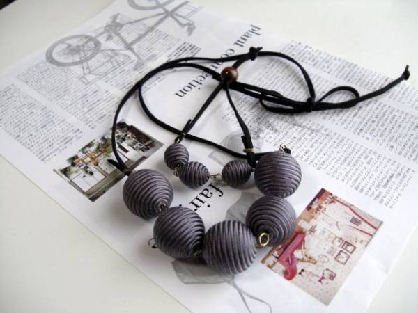 自由と遊びのパターン・・シリーズです♪シックなグレー・・シックなグレーの異素材のネックレスとブレスレットの2点セットです♪15ミリから25ミリ位までのグレーのサテンボールを集めました♪黒のスェード紐を合わせて甘すぎない大人のロマンチックしています♪ネックレスの長さは全長90センチ位です♪短く結んでチョーカー風にされても素敵です♪ブレスレットの長さは全長28センチで調節自由です♪それぞれ単品でも出品しています♪ハンドメイドをご理解いただいてノークレーム・ノーリターンでお願いします♪