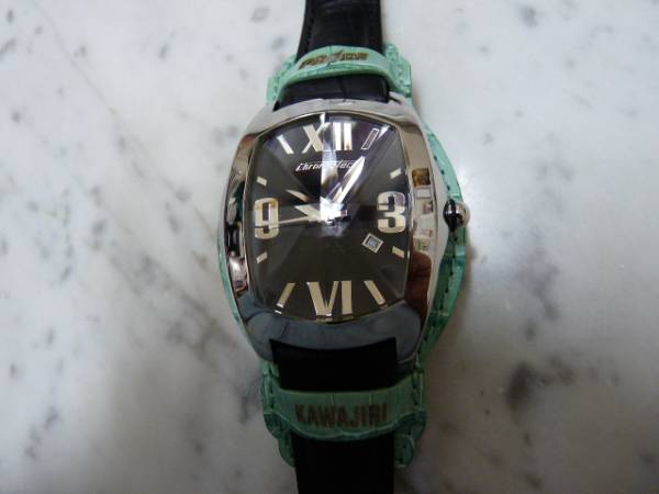 Chronotech*クロノテックxPRIDE・KAWAJIRI-TATSUYAコラボ*腕時計*展示品 サイズ:フェイス5x4cm、重さ:112g、全長:27cm、8穴(19.5cm~24.5cmまで調節可能)幅:2cm 材質:カーフ 備考:電池式!付属品なし