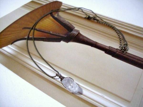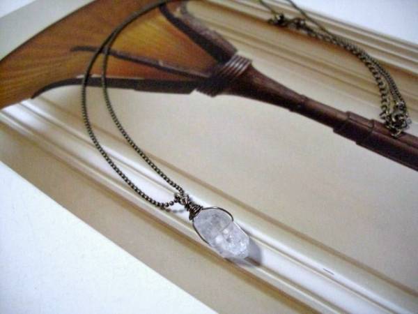 創作ノート・・シリーズです♪高貴な白の章・・神秘的な水晶のネックレスです♪トップは自然のカットが個性的な両剣水晶です♪大きさは22×15ミリ位です♪ワイヤーでデザインしてアンティークモダンな表情です♪長さは72センチ+アジャスター13センチで最長85センチ位です♪♪お揃いのイヤリングやリングも出品しています♪シンプルで飽きのこないいつまでも着けられるデザインを考えて作りました!ハンドメイドをご理解頂いてノークレーム、ノーリターンでお願いします