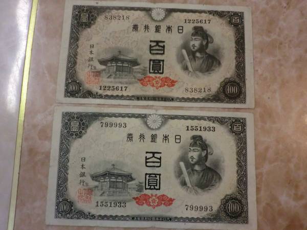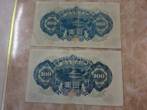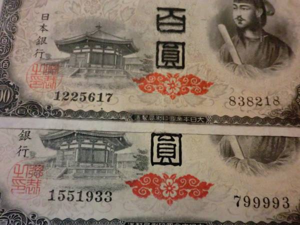 日本銀行券A号100円 4次100円の芝工場・大阪工場の2枚セットです。