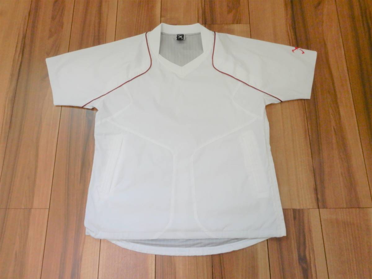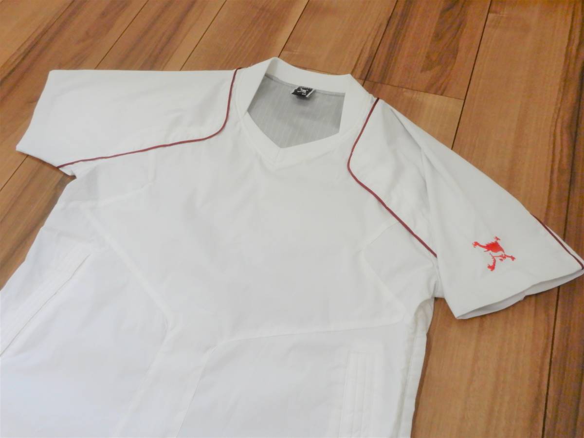 美品 即完売モデル オークリー スカル ゴルフ プルオーバー ジャケット M ホワイト 白/臙脂 汗だし ブレーカー レア 希少 ポケット付き