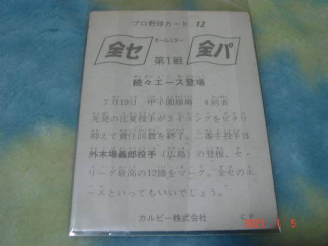 *カルビー75年 プロ野球カード NO.12 (外木場/広島)   *