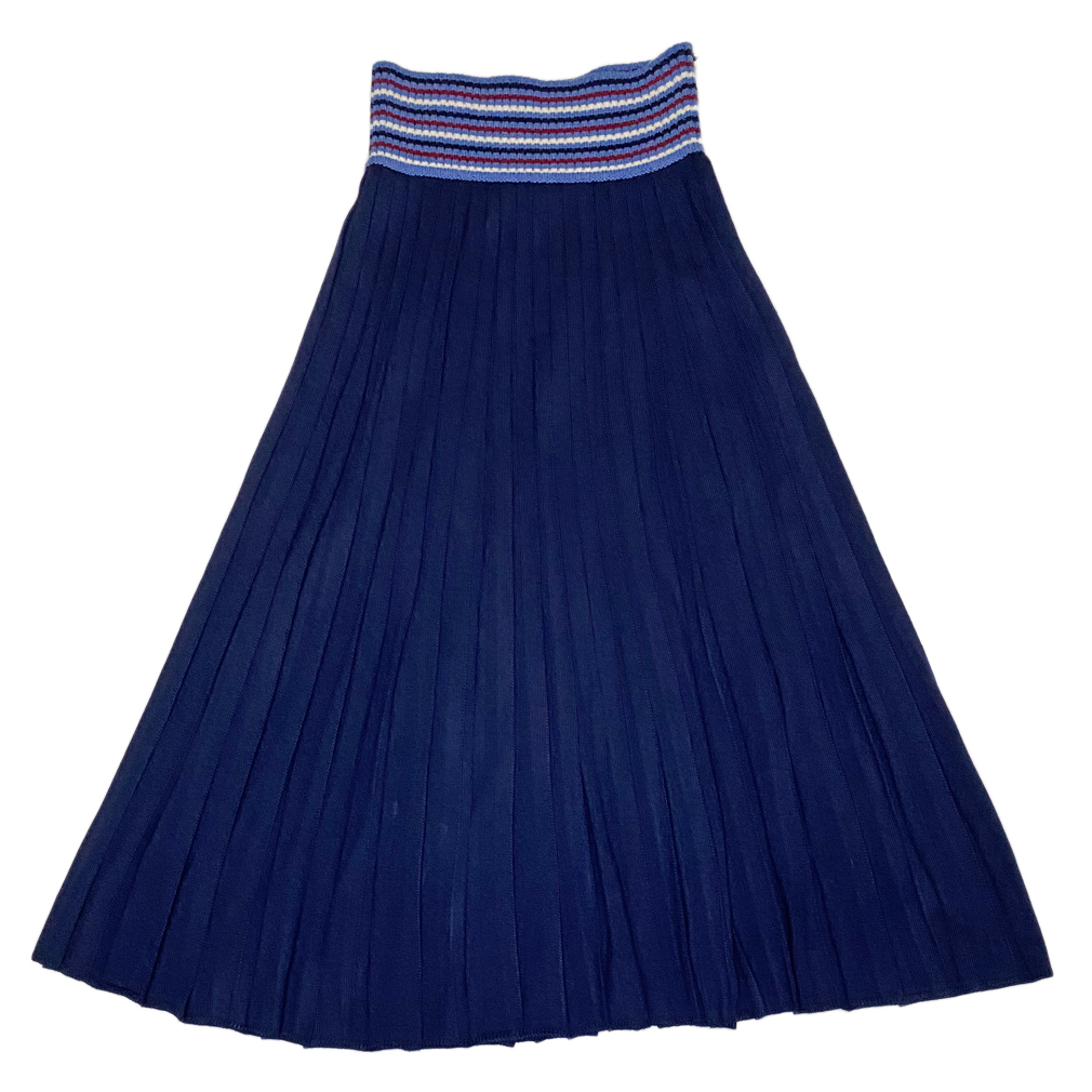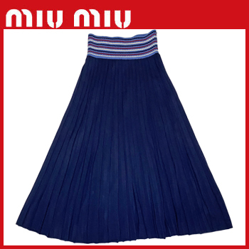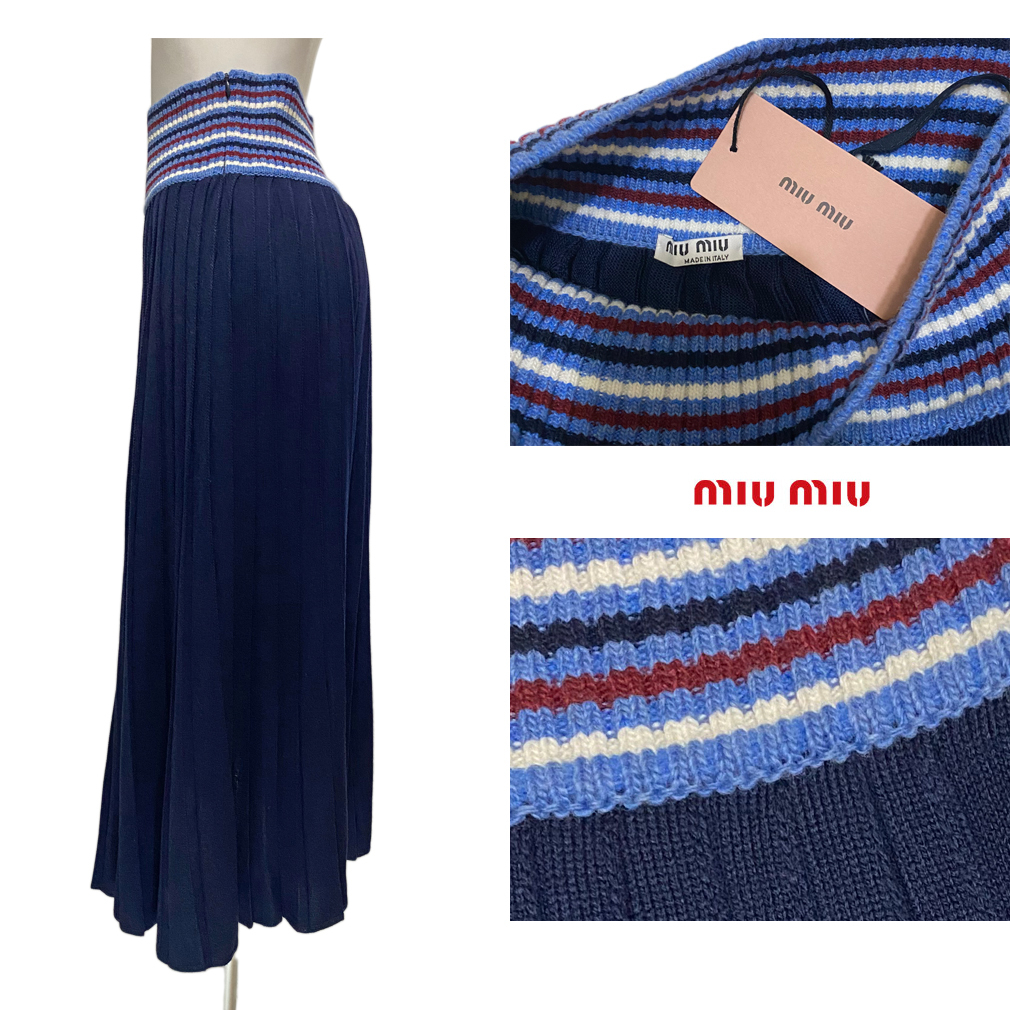 ウエストのデザインがアクセントのmiu miuのニットプリーツロングスカート。上質のウールニットの柔らかい肌触りが着心地良いです。 |