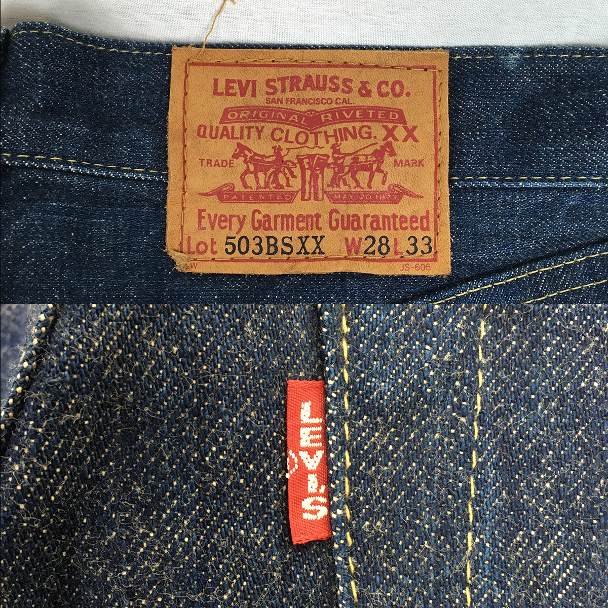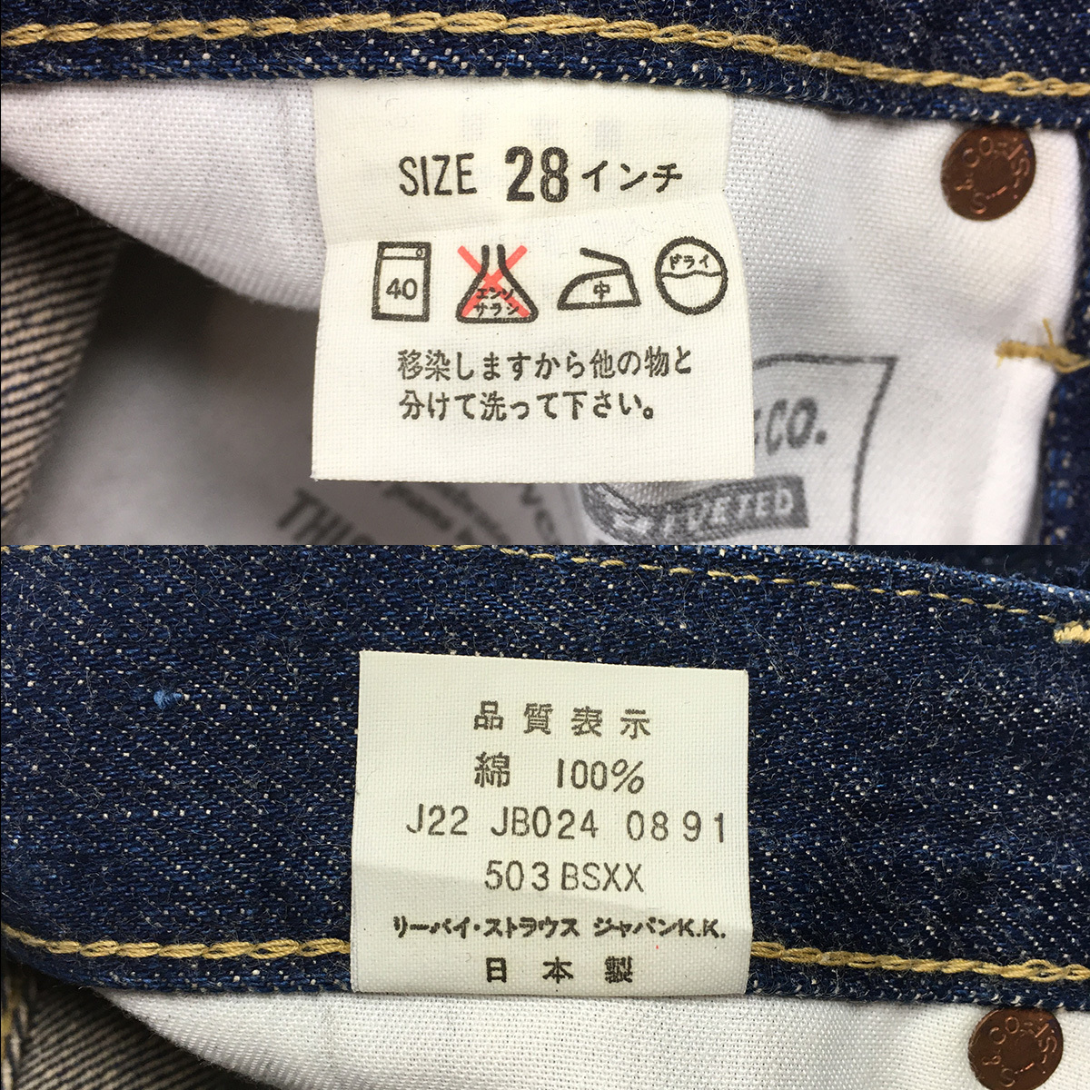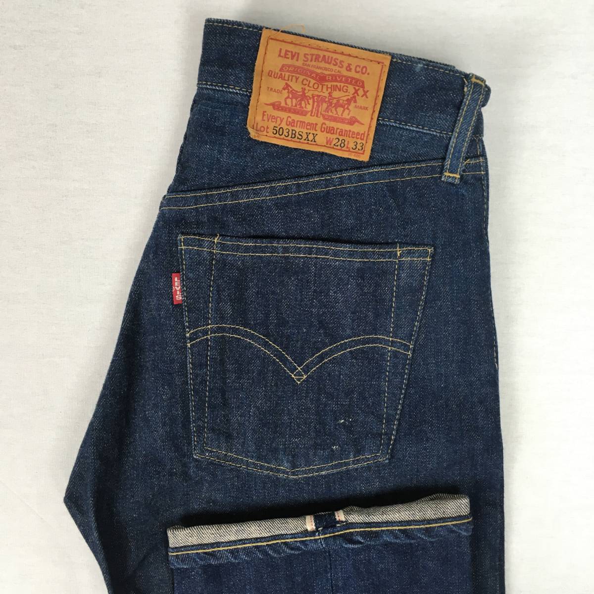 【美品/90s】LEVI'S リーバイス 503BSXX BIG'E' 日本製 91年 ジーンズ W28 L33 隠しリベット 赤耳 セルビッチ ボタンフライ 革パッチ