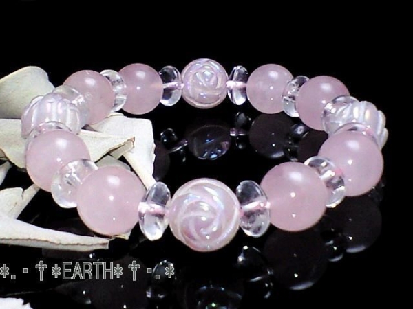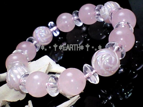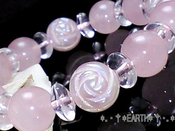 | 天然石★10ミリ薔薇彫ローズクォーツAAA&ローズクォーツ 数珠 | |